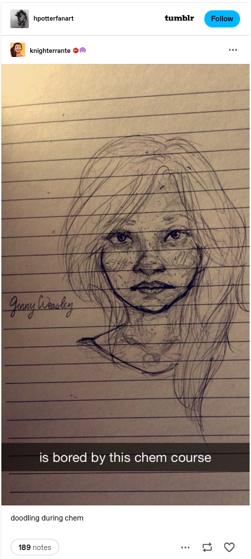 Celles-ci peuvent être un portrait du personnage de Ginny Weasley crayonné sur le coin d’une feuille pendant un cours de chimie…