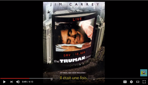 Ensuite, les affiches animées se succèdent, apparaissant quelques secondes alors que la narration sert de fil conducteur. Ainsi, l’affiche du film The Truman Show (1999) marque le point de départ d’un conte amorcé par « Once upon a time… ».